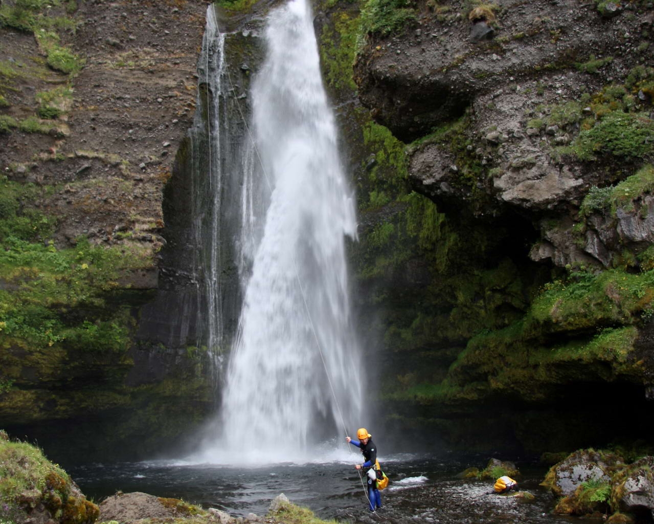 Una de las cosas que más te impresionan cuando comienzas a moverte por el país es la gran cantidad de cascadas que existen. El agua de los glaciares en su camino hacia el mar, salva las barreras montañosas formando muchas cascadas. Los saltos de agua se hacen muy comunes cerca de la costa. Siguiendo la gran carretera 1 se pueden observar multitud de estas cascadas. Desgraciadamente suelen ser saltos de agua aislados, que discurren en la mayor parte de los casos por un lecho geológicamente muy joven, donde el agua apenas ha realizado su trabajo erosivo y de modelado. Son cascadas que no circulan por un cauce encajado y que normalmente carecen de paredes. Aunque existen excepciones, como el cañón y cascadas de Skógafoss, que posee tramos bastante encañonados, aunque a causa del poco desnivel que salva a lo largo de su gran recorrido, también concentra pocas cascadas. Además, su caudal es siempre tan extremadamente alto y devastador que harían prácticamente imposible su descenso mediante nuestras técnicas.